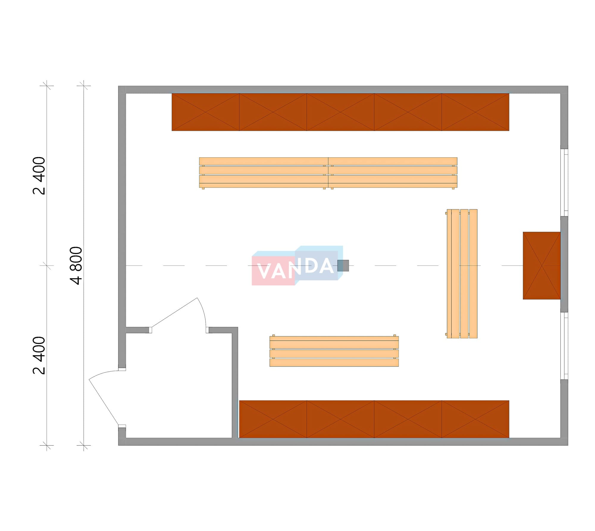 Проект модульной раздевалки 6.0х4,8 с тамбуром